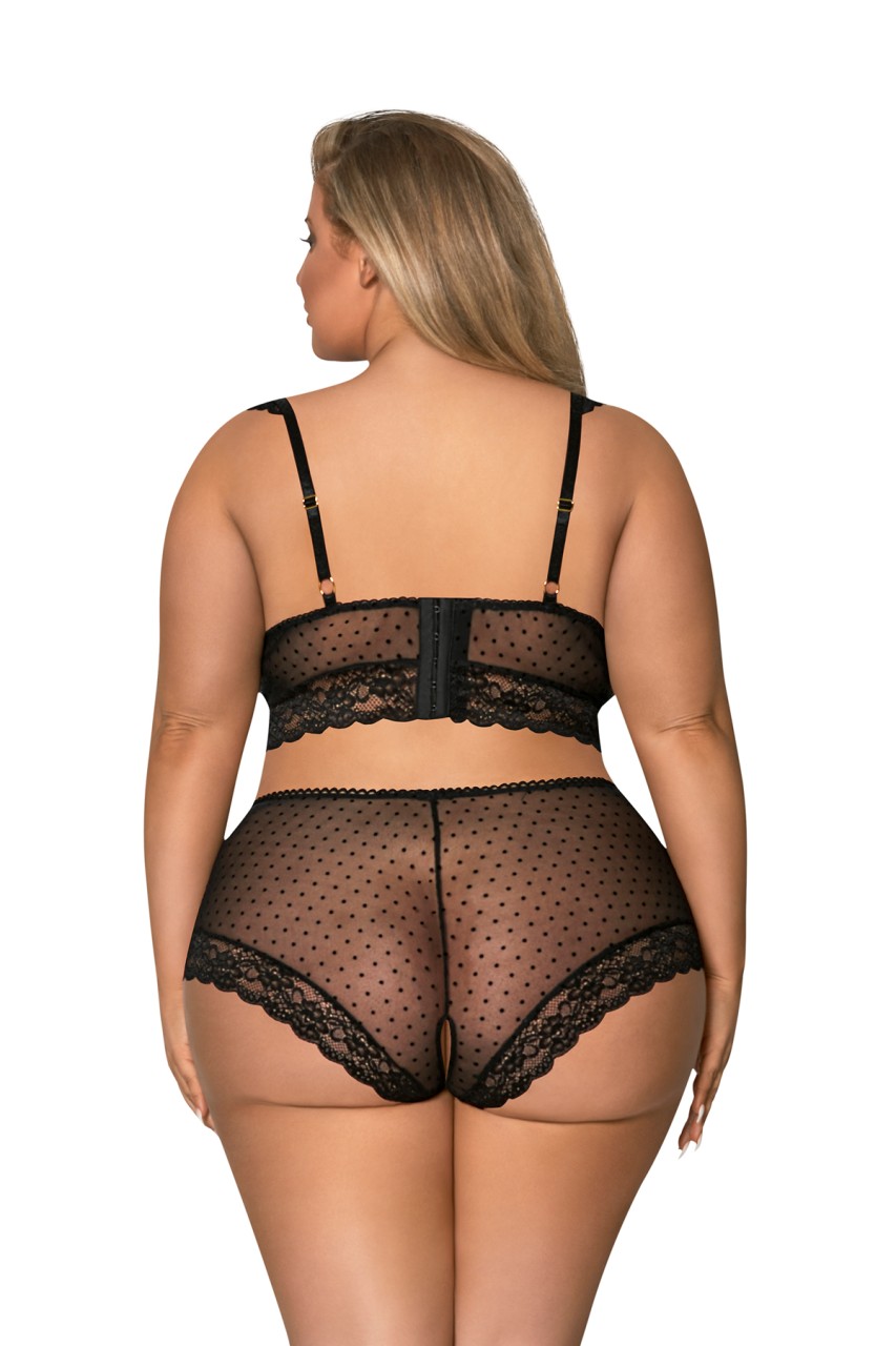 From the Exposed by Magic Silk collection, this style includes: a demi bra featuring lace and elastic adjustable shoulder straps with gold tone sliders and hook & eye closures in the back, flocked velvet dots and soft lace details throughout, scalloped trims, satin creamy white bows, and a matching boy short with a split crotch detail. Flocked velvet dots lain across soft and stretchy mesh, paired with lovely lace accents and creamy white satin bows. Hand Wash Cold. No Bleach. Dry Flat. 82% Nylon, 18% Spandex