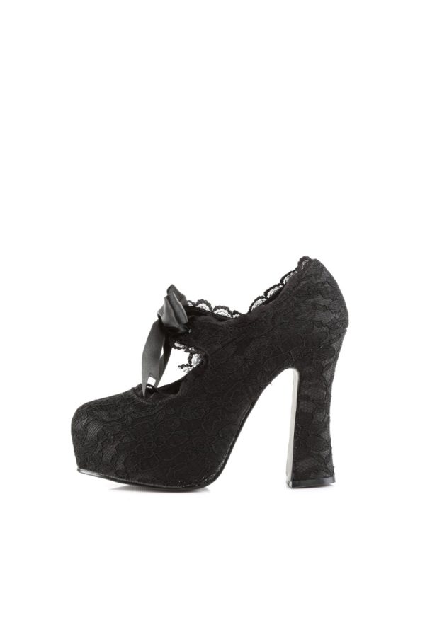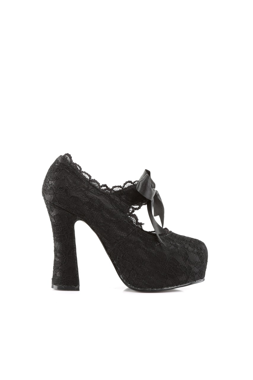 5″” (12.7cm) Heel, 1 1/2″” (3.8cm) Platform Mary Jane Pump with Lace Overlay and Bow Detail
