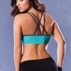Molded push-up underwire sports bra with strappy back detail and contrast binding