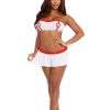 4-piece nurse bedroom costume. Strapless bustier-look knit tie back bralette with patches and contrast details.