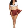 Two-piece schoolgirl-themed set , Knit crop top features lace neckline detail and tie-front closure , Pleated mini-skirt features plaid print and side slit detail , Matching hair ribbons and novelty glasses included