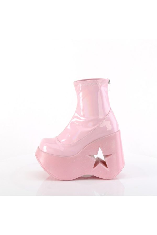 5″” (127mm) Star Cutout Platform Wedge Stretch Ankle Boot, Back Metal Zip Closure