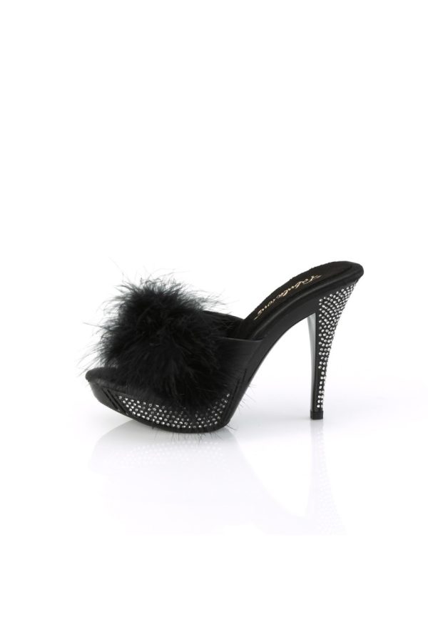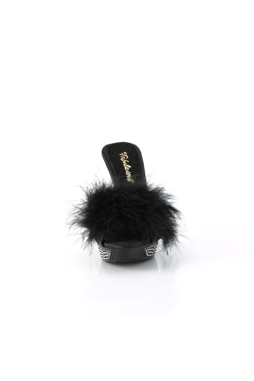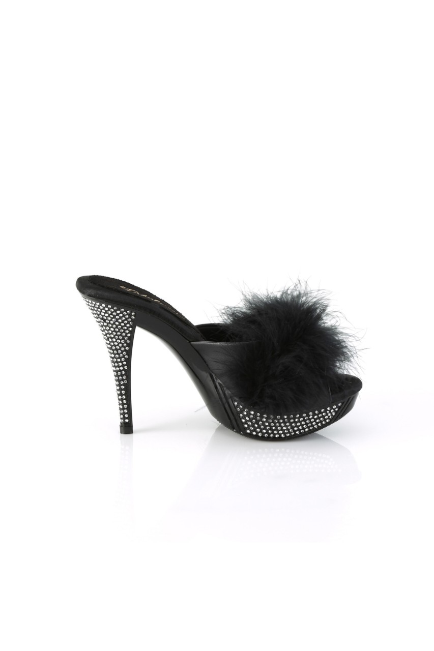 4 1/2″” (114mm) Heel, 1″” (25mm) Platform Marabou Slipper Featuring Rhinestone Embellished Heel and Platform