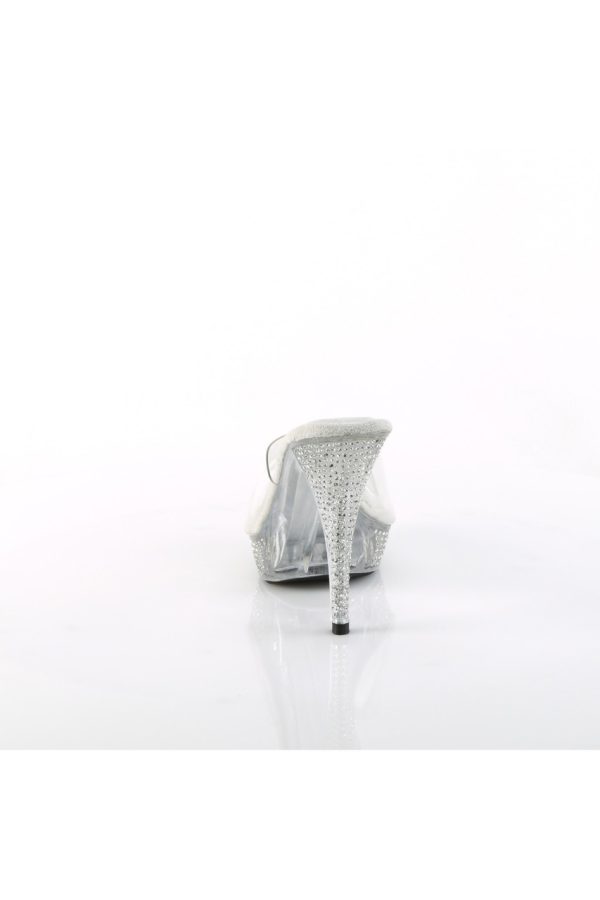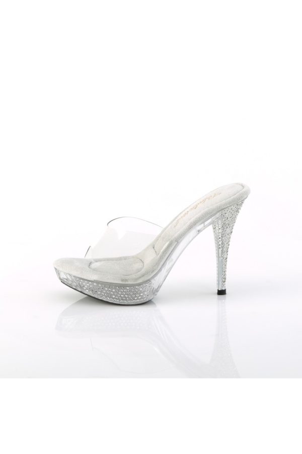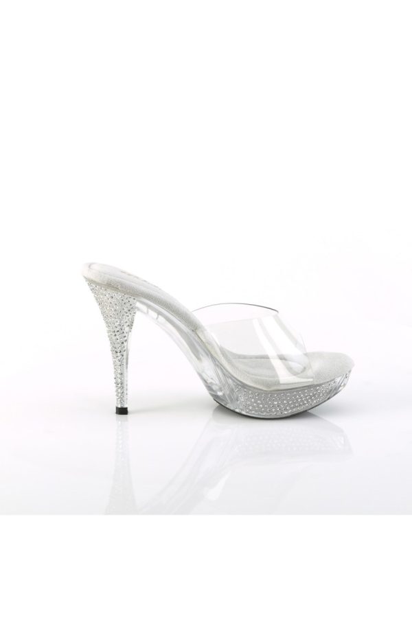 4 1/2″” (114mm) Heel, 1″” (25mm) Platform Slide Featuring Rhinestone Embellished Heel and Platform