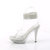 4 1/2″” (114mm) Heel, 1″” (25mm) Platform Sandal w/Rhinestone Ankle Cuff Featuring Rhinestone Embellished Heel and Platform