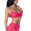 From the Exposed by Magic Silk collection, this style includes: A stretchy lace bra featuring a satin ribbon bow, hook & eye closures in the back, adjustable shoulder straps with gold tone sliders, and a matching thong and lace skirt with scalloped edges. Stretch lace galloons placed to maximize the flirty scalloped edges, finished with soft, shiny elastic strap details, blacklight reactive. Hand Wash Cold. No Bleach. Dry Flat. 90% Nylon / 10% Spandex