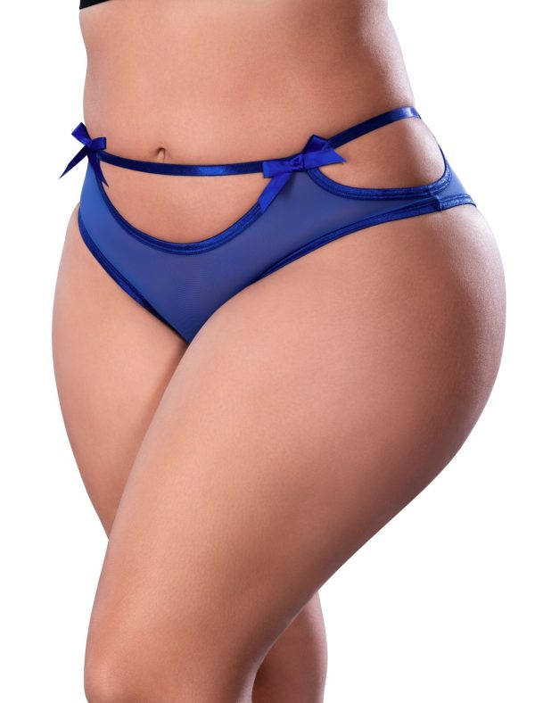 From the Exposed by Magic Silk collection, this style includes: a mesh cheeky boy short with cutout designs and two blue satin bows. Hand Wash Cold. No Bleach. Dry Flat. 90% Polyester / 10% Spandex