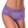 From the Exposed by Magic Silk collection, this style includes: A mesh boy short featuring lace trimming and a satin bow tie.