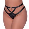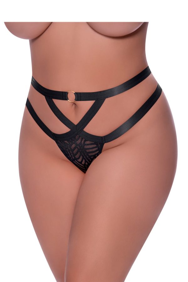 From the Exposed by Magic Silk collection, this style includes: a cheeky mesh panty featuring two elastic cross-strap designs and a gold tone o-ring detail in the front. Hand Wash Cold. No Bleach. Dry Flat. 90% Nylon, 10% Spandex