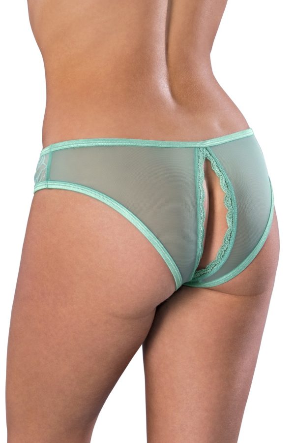 From the Exposed by Magic Silk collection, this style includes: a cheeky panty featuring floral mesh, lace on the inner trims, and a crotchless cutout. Hand Wash Cold. No Bleach. Dry Flat. Lace: 83% Nylon / 17% Spandex Mesh: 90% Nylon / 10% Spandex
