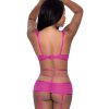 From the Exposed by Magic Silk collection, this style includes: a lace and mesh cut-out dress featuring adjustable shoulder straps with gold tone sliders, lace cups with underwire and hook and eye closure in the back, an elastic adjustable waist strap with swan hook closure, attached adjustable garters with gold tone sliders, and a matching lace g-string. Hand Wash Cold. No Bleach. Dry Flat. Lace: 90% Nylon, 10% Spandex Mesh: 84% Polyester, 16% Spandex