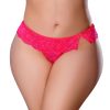 From the Exposed by Magic Silk collection, this style includes: A stretchy lace thong featuring attached flowy scalloped lace at the hips and a satin bow. Stretch lace galloons placed to maximize the flirty scalloped edges, finished with soft, shiny elastic strap details, blacklight reactive. Hand Wash Cold. No Bleach. Dry Flat. 90% Nylon / 10% Spandex