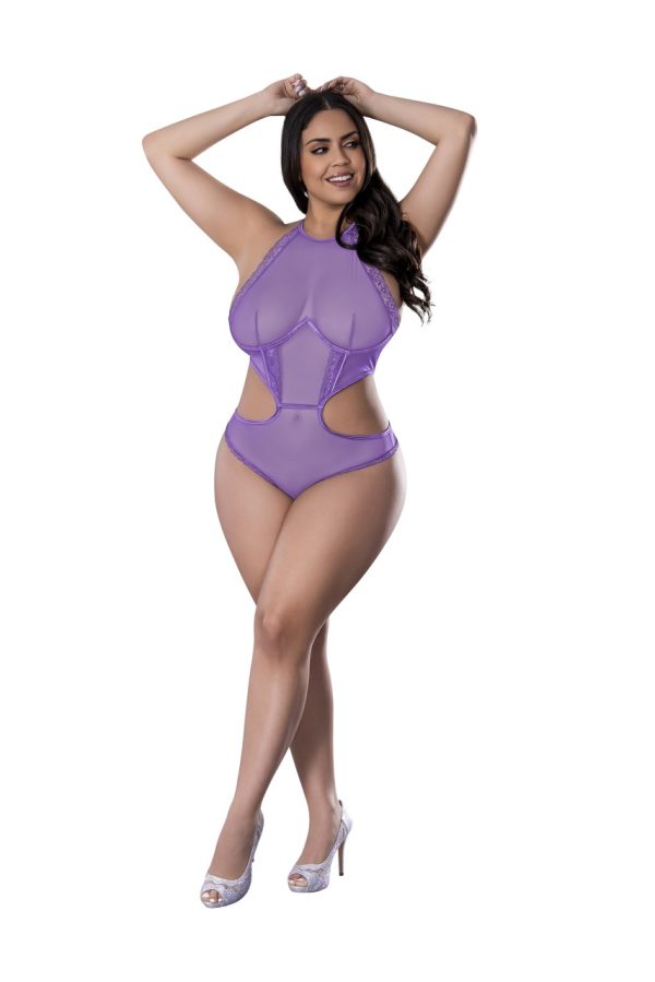 From the Exposed by Magic Silk collection, this style includes: A halter mesh teddy featuring a high neckline with swan hook closure at the neck, hook & eye closure at the back, and lace trimming. Hand Wash Cold. No Bleach. Dry Flat. 85% Nylon / 15% Spandex