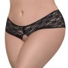 From the Split Backs by Magic Silk collection, this style includes: A split back short in lace fabric with an open crotch and satin bow accent in front. Hand Wash Cold. No Bleach. Dry Flat. 85% Polyester, 15% Spandex