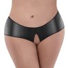 From the Split Backs by Magic Silk collection, this style includes: A split back short in wet-look black fabric with an open crotch and a satin bow accent in the front. Hand Wash Cold. No Bleach. Dry Flat. 95% Polyester, 5% Spandex
