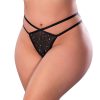 From the Exposed by Magic Silk collection, this style includes: a black mesh thong with dotted gold sequins, cross style hip straps and a split crotch design. Hand Wash Cold. No Bleach. Dry Flat. 90% Polyester / 10% Spandex