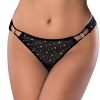 From the Exposed by Magic Silk collection, this style includes: a black mesh tanga with dotted gold sequins and gold beads connecting at the hips. Hand Wash Cold. No Bleach. Dry Flat. 90% Polyester / 10% Spandex