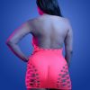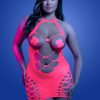 Celebrate your curves in style with this Black Plus Size Bodystocking Dress featuring shimmering detail. The chic design enhances and flatters your figure, while the intricate body stocking pattern adds a touch of allure. The shimmering detail brings a glamorous element, ensuring you stand out at any intimate occasion or night on the town. Embrace your confidence and showcase your sophistication with this stunning plus-size black bodystocking dress (gloves and thong are not included)
