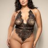 Shimmer lace pearl halter teddy with open back and pearl string crotch