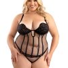 Gold flecked mesh corset with lightly padded underwire cups, corded lace-up back closure and matching g-string panty