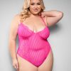 Fantasy Lingerie – JULIETTE Lace and striped mesh crotchless teddy – FL-2436X
