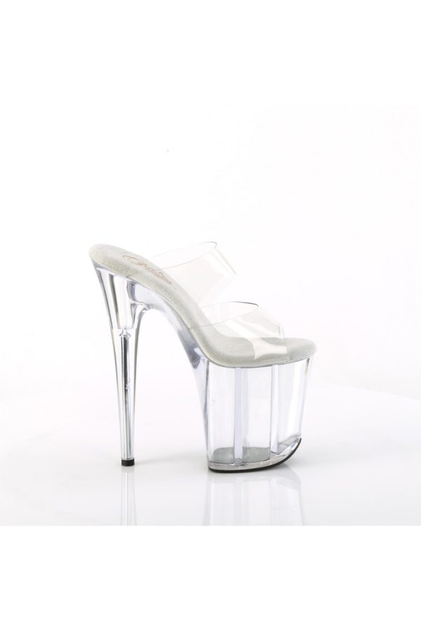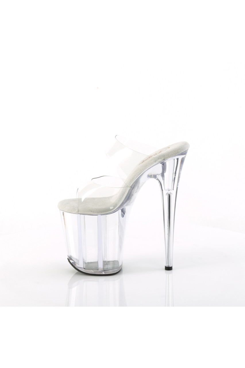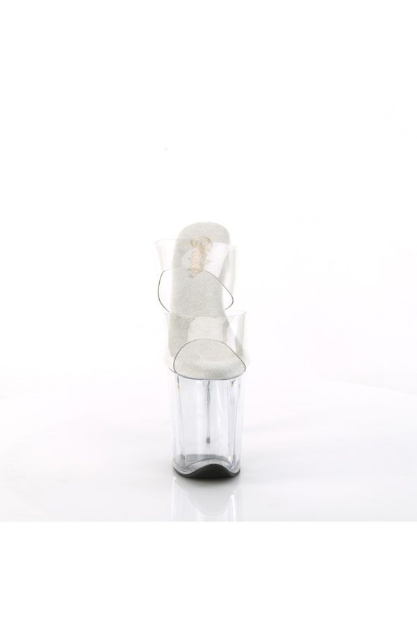 8″” (20.3cm) Stiletto Heel, 4″” (10.2cm) Two Band Platform Slide