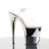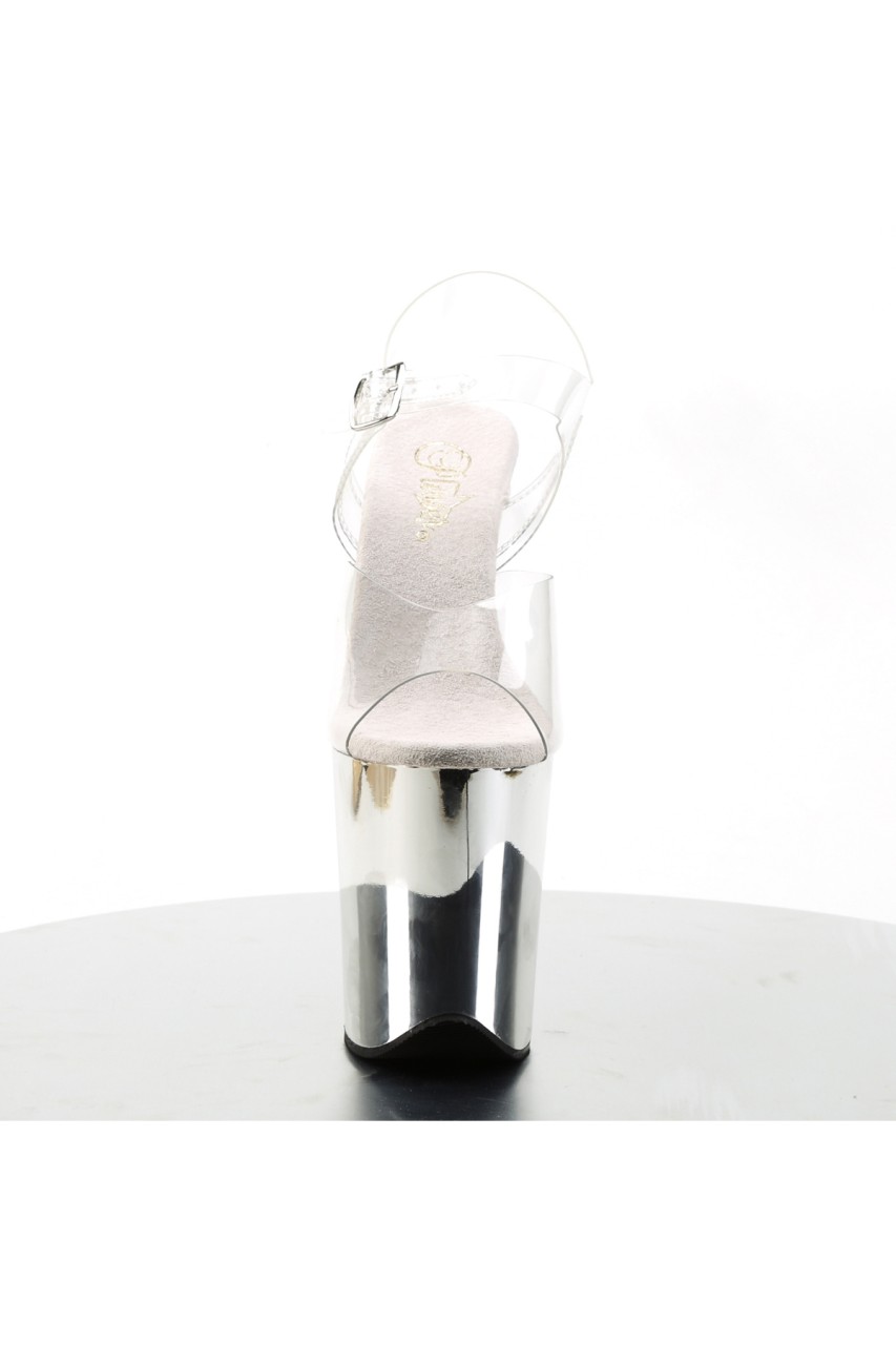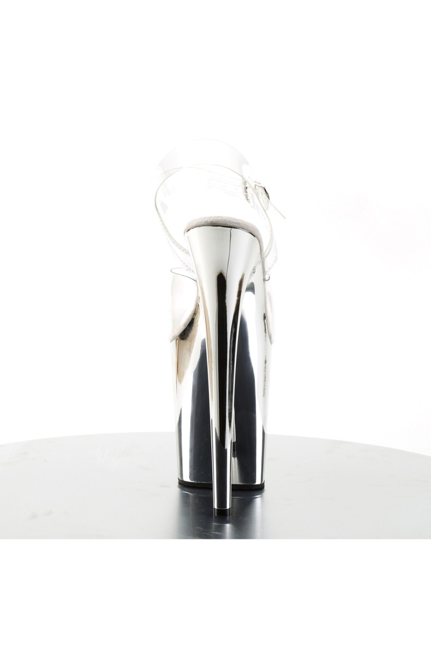 8″” (20.3cm) Stiletto Heel, 4″” (10.2cm) Platform Ankle Strap Sandal with Chrome Plated Bottom