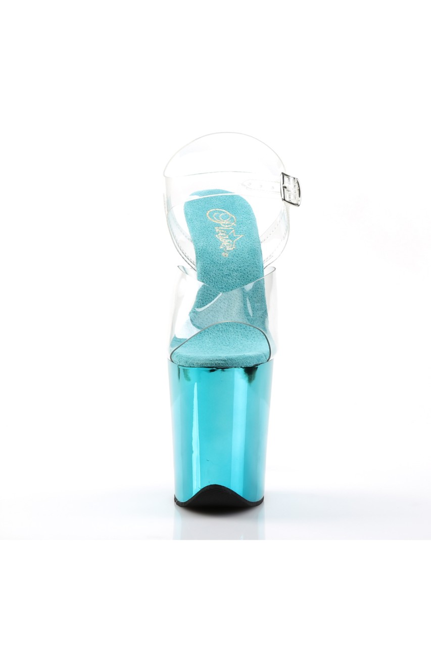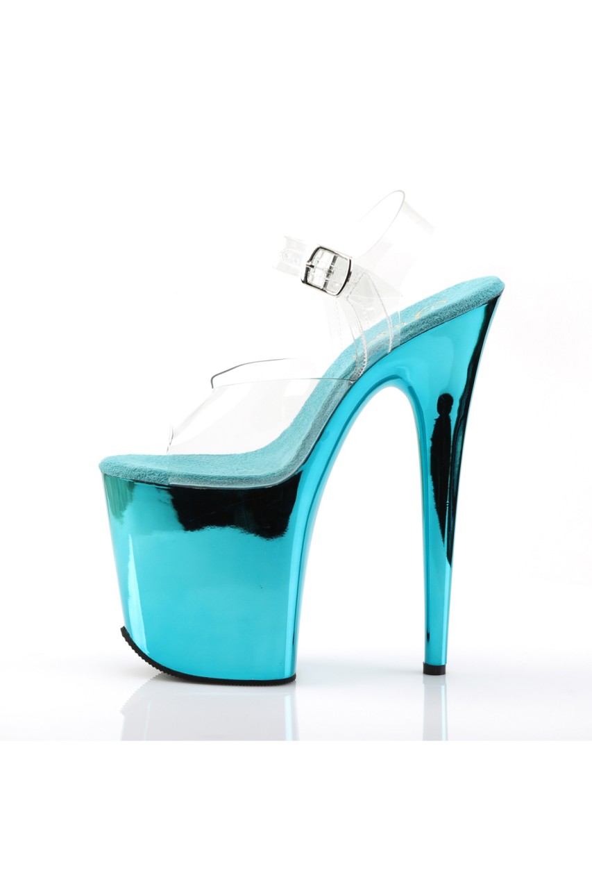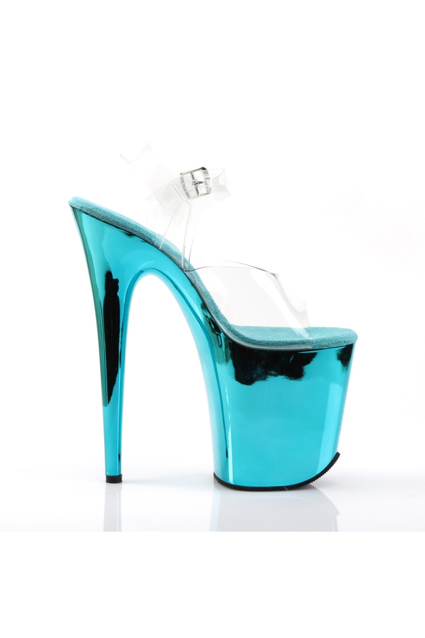 8″” (20.3cm) Stiletto Heel, 4″” (10.2cm) Platform Ankle Strap Sandal with Chrome Plated Bottom, Turquoise Chrome