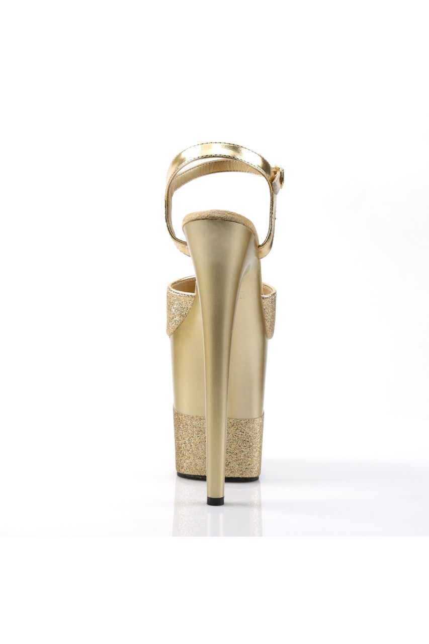 8″” (20.3cm) Stiletto Heel, 4″” (10.2cm) Platform Ankle Strap Sandal Featuring Half Glittered Platform