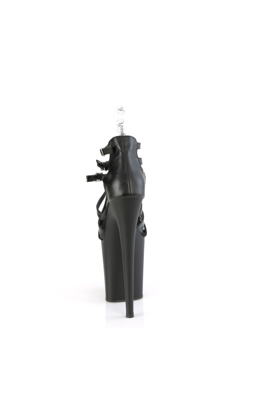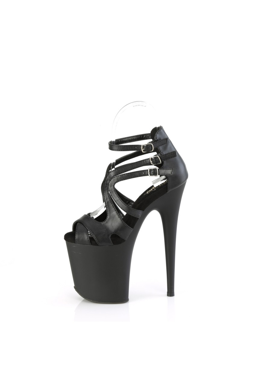 8″” (200mm) Heel, 4″” (100mm) Platform Strappy Peep Toe Close Back Triple Ankle Buckle Strap Sandal