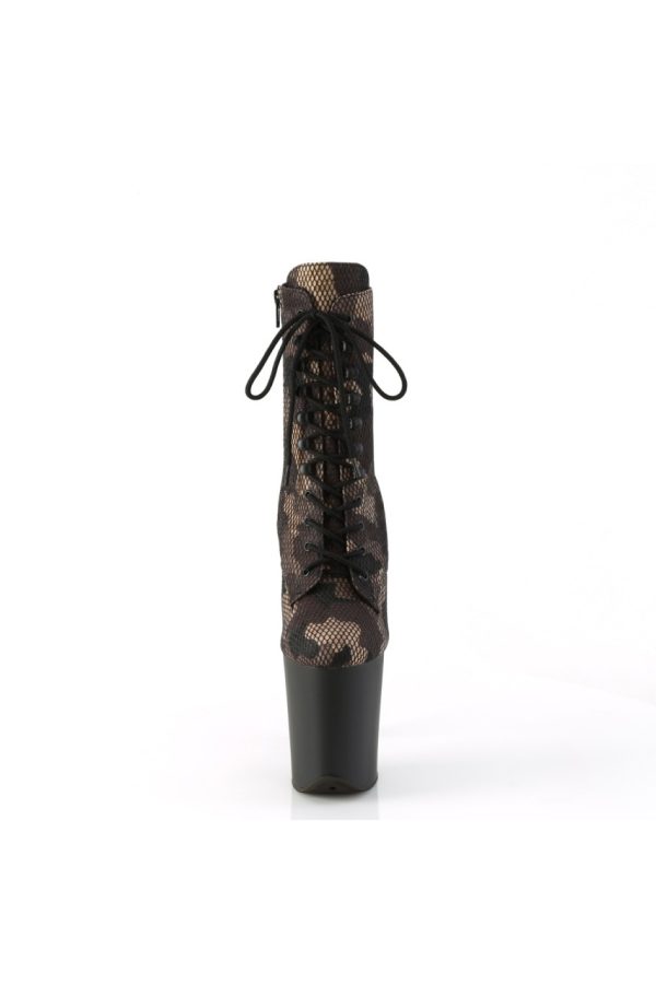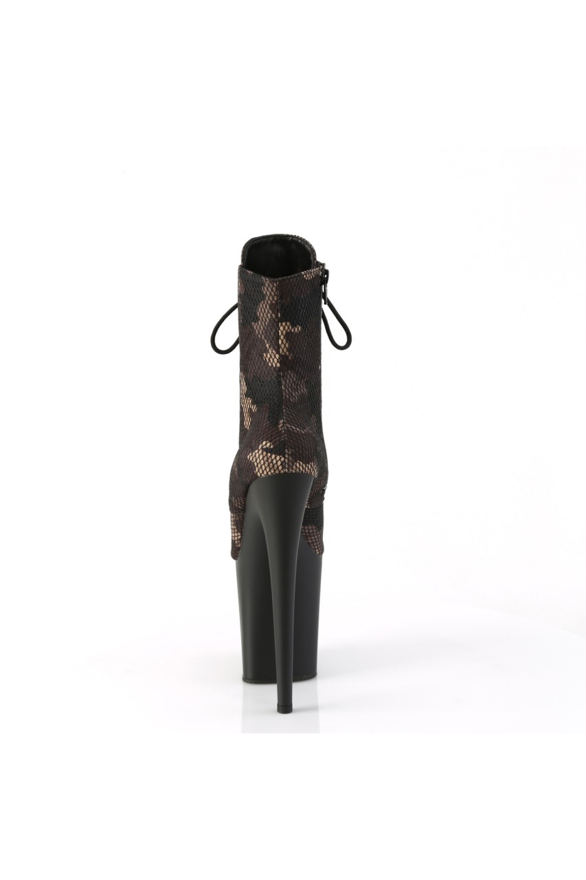 8″” (200mm) Heel, 4″” (100mm) Platform Lace-Up Front Mesh Overlay Ankle Boot, Inside Zip Closure