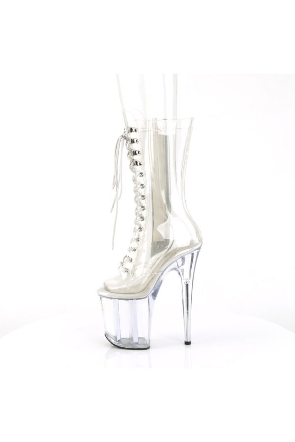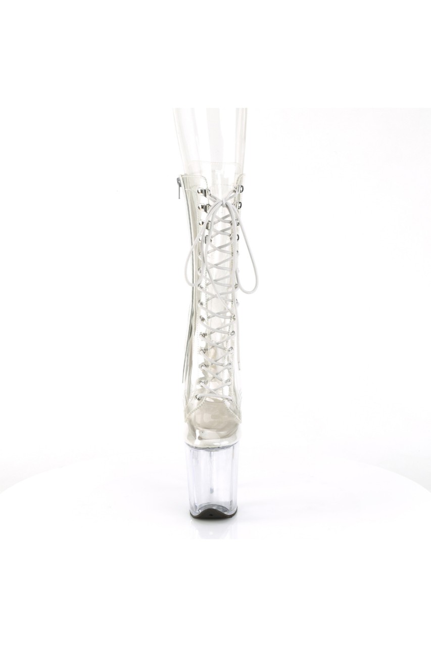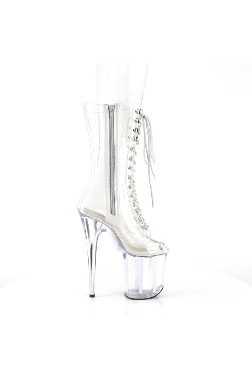 8″” (200mm) Heel, 4″” (100mm) Platform Lace-Up Front Mid Calf Boot, Inner Side Zip Closure