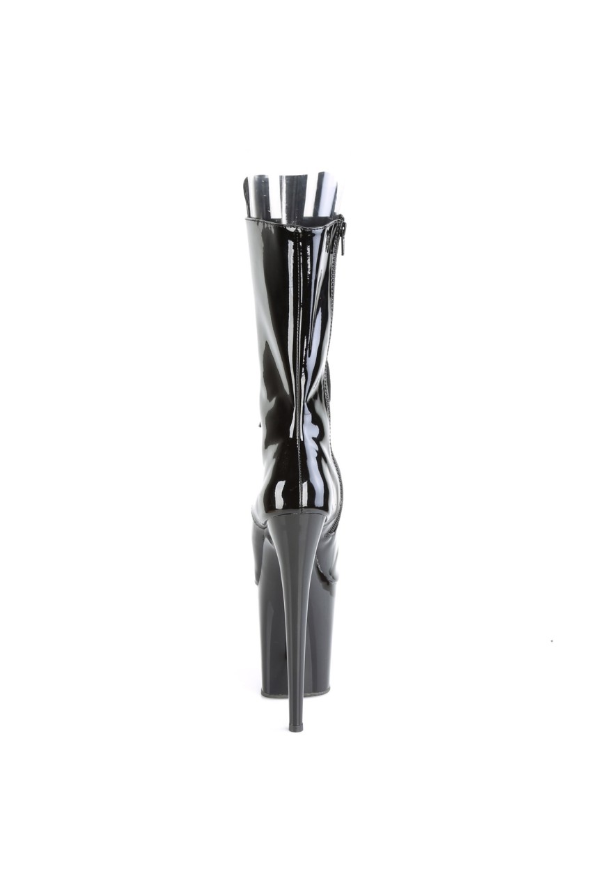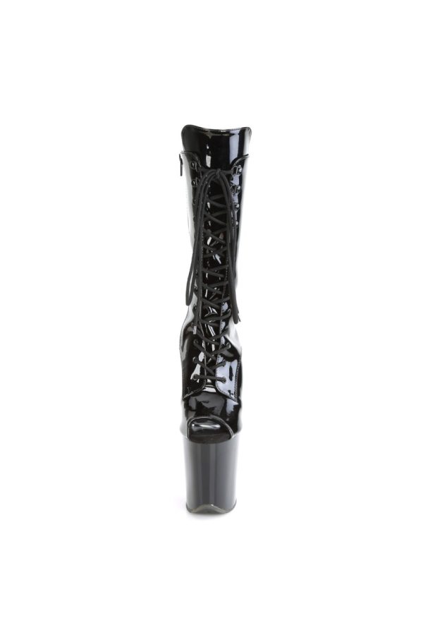 8″” (200mm) Heel, 4″” (100mm) Platform Peep Toe Lace-Up Front Mid Calf Boot, Inner Side Zip Closure