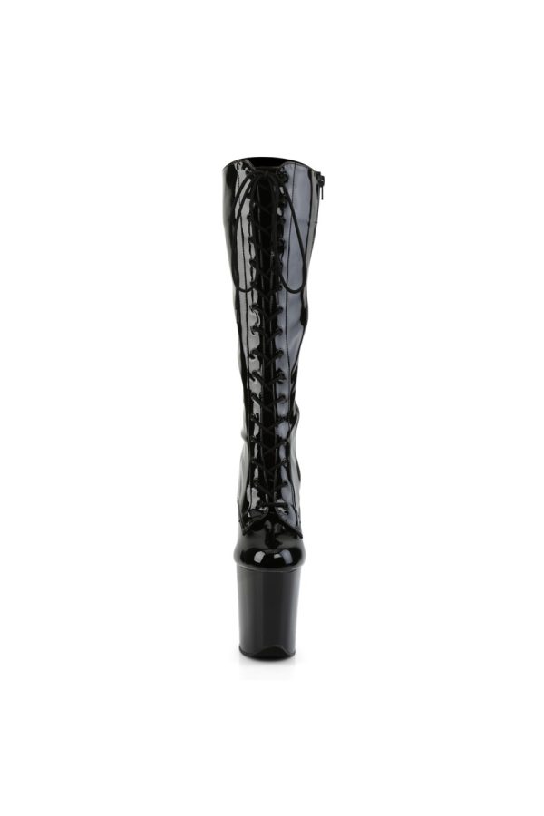 8″” (20.3cm) Stiletto Heel, 4″” (10.2cm) Platform Lace-Up Front Stretch Knee High Boot, Full-Length Inner Side Zip Closure