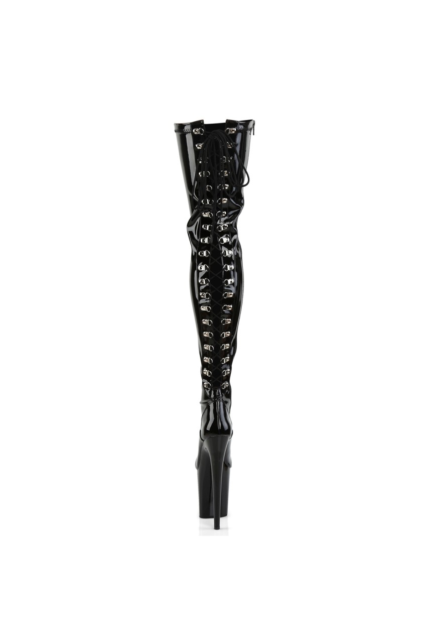 8″” (20.3cm) Stiletto Heel, 4″” (10.2cm) Platform Lace-Up Back Stretch Thigh High Boot, Full-Length Inner Side Zip Closure