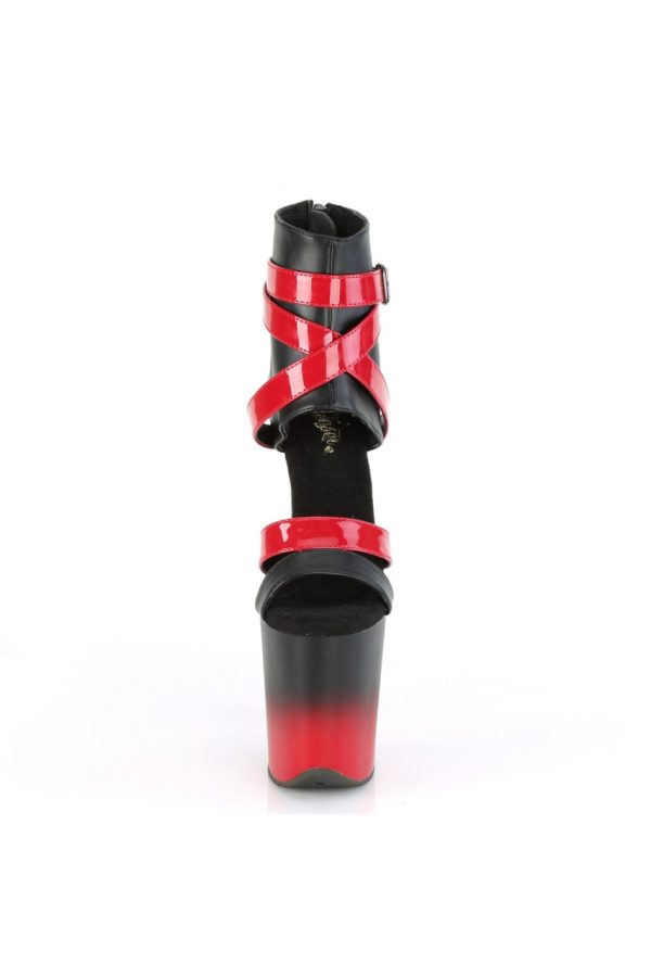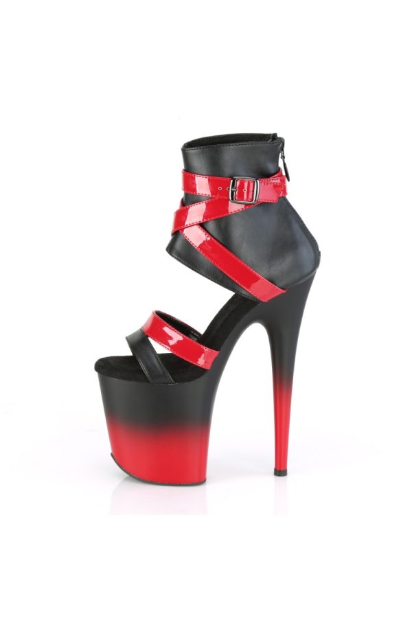 8″” (200mm) Heel, 4″” (100mm) Platform Two Tone Bootie Sandal w/Criss Cross Ankle Strap, Back Zip Closure