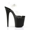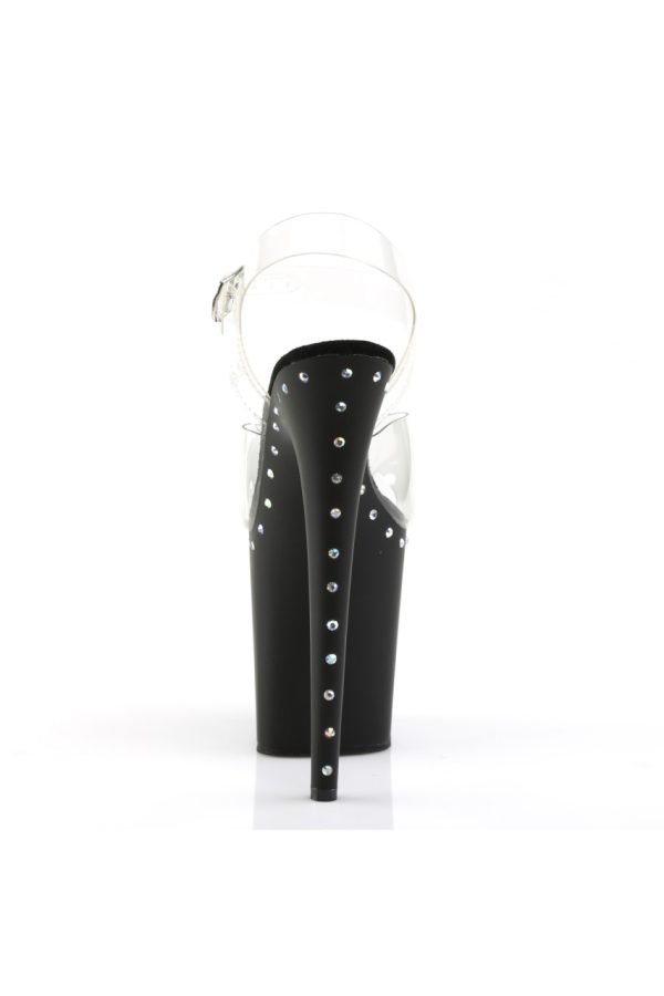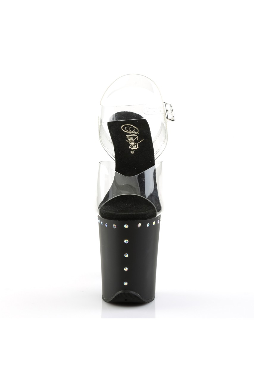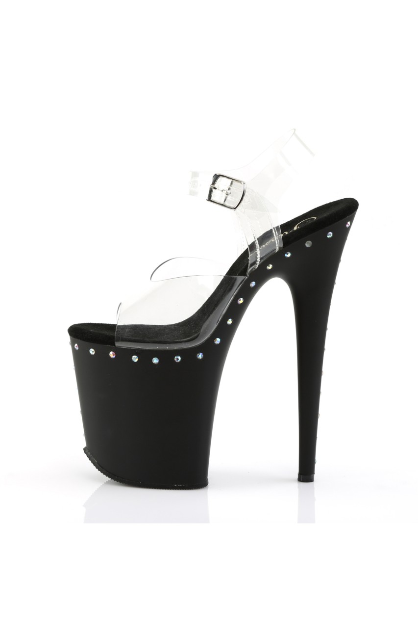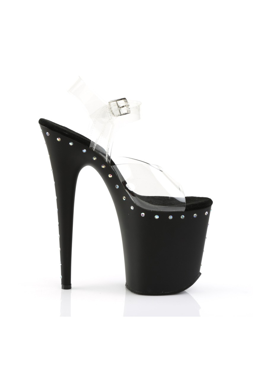 8″” (20.3cm) Stiletto Heel, 4″” (10.2cm) Platform Ankle Strap Sandal Featuring AB Lined Rhinestones on the Platform