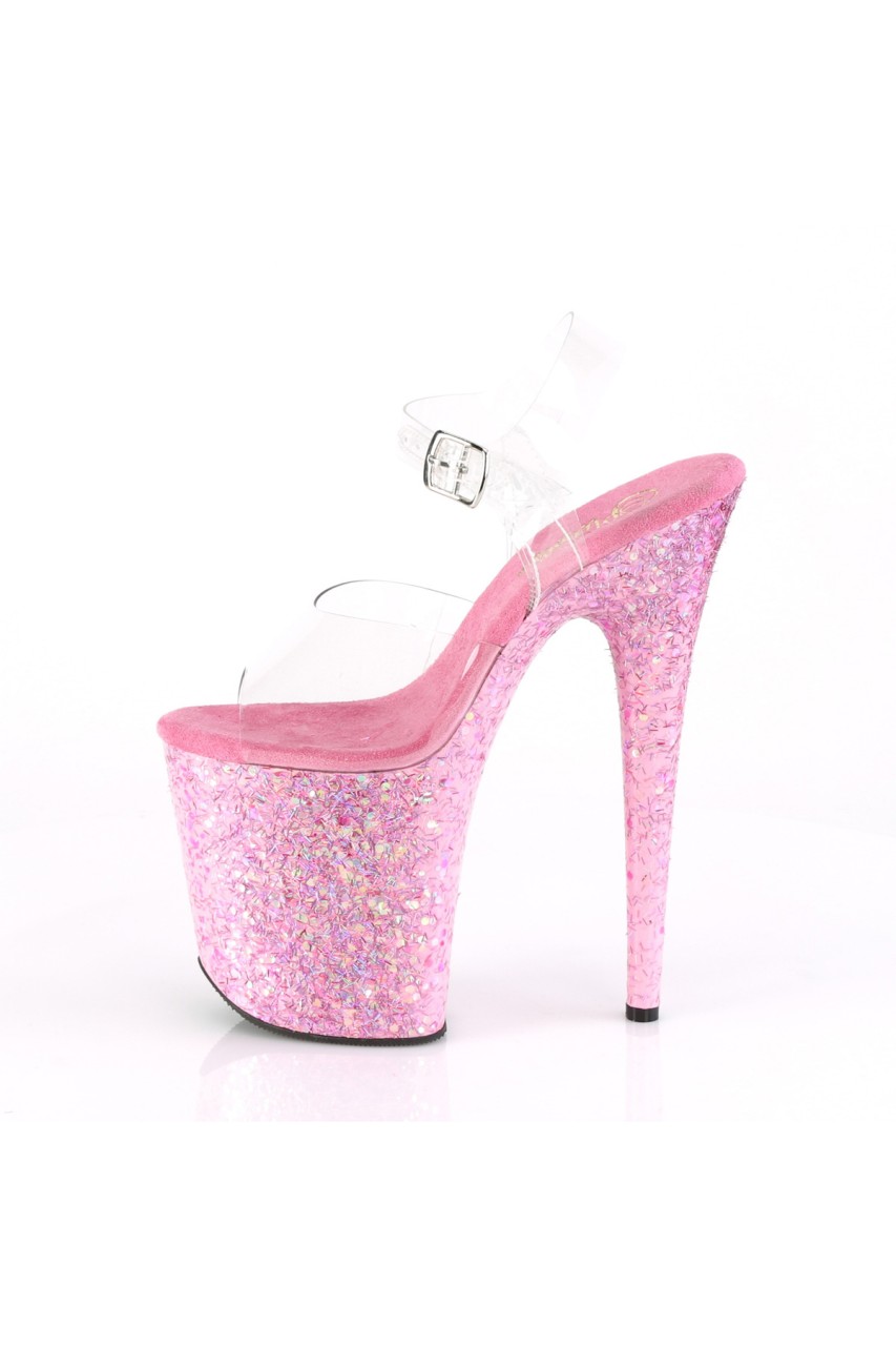 8″” (200mm) Heel, 4″” (100mm) Platform Ankle Strap Sandal Featuring Confetti Covering The Entire Platform Bottom