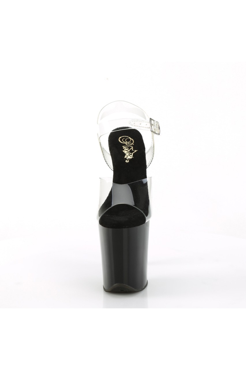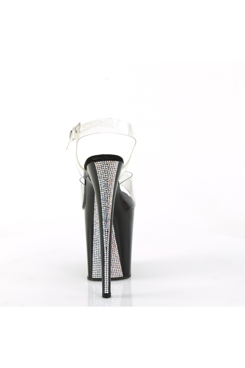 8″” (200mm) Heel, 4″” (100mm) Platform Ankle Strap Sandal w/ Contrast Rhinestones on the Platform Underside & Back of Heel