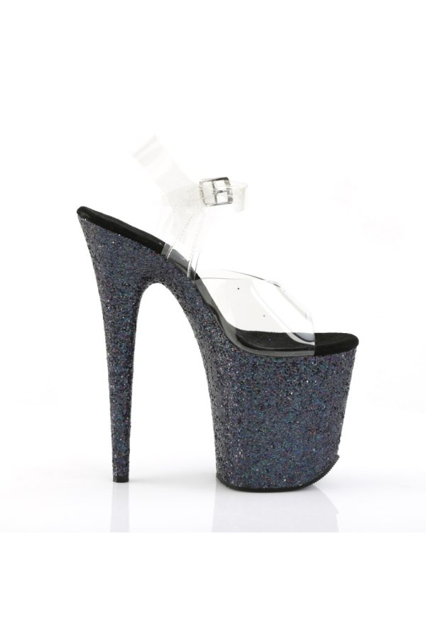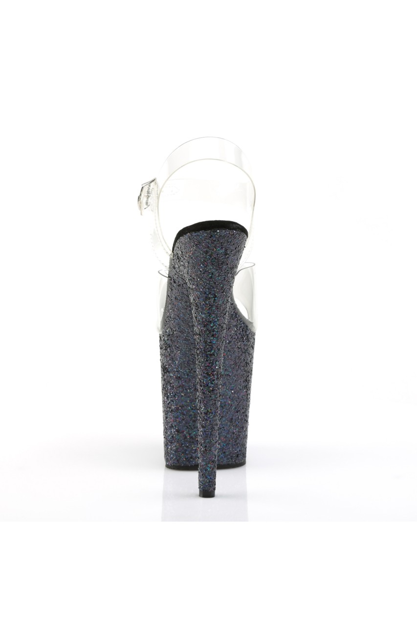 8″” (200mm) Heel, 4″” (100mm) Platform Ankle Strap Sandal Featuring the Entire Platform Bottom Covered w/ Glitters