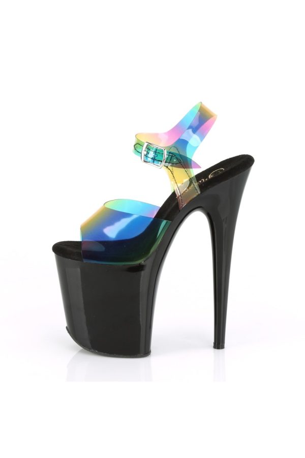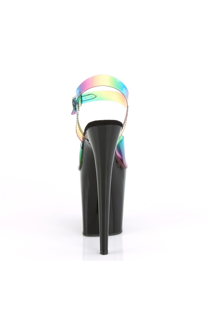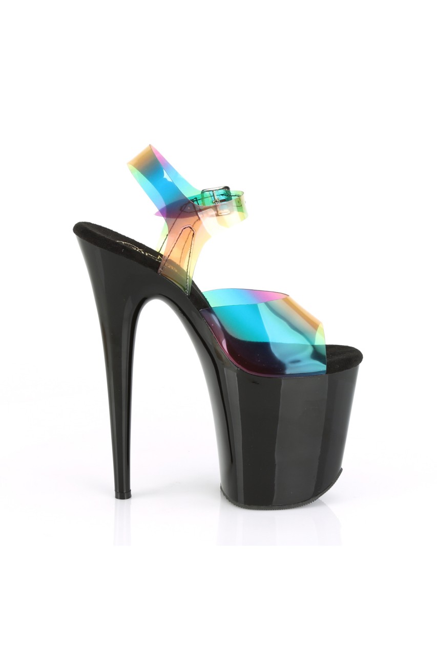 8″” (200mm) Heel, 4″” (100mm) Platform Ankle Strap Sandal Featuring Rainbow Effect Upper