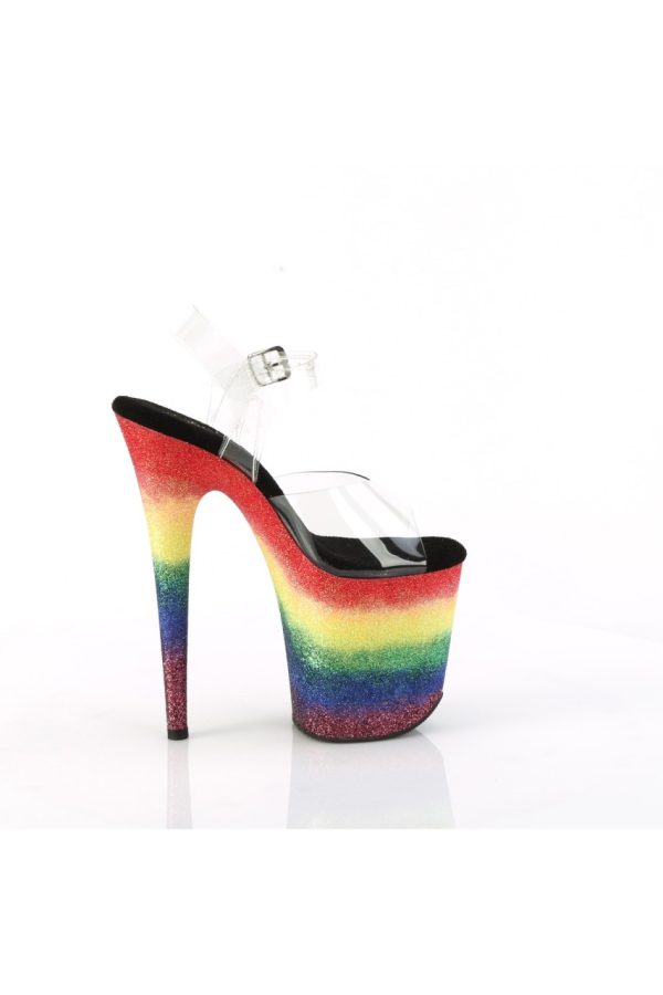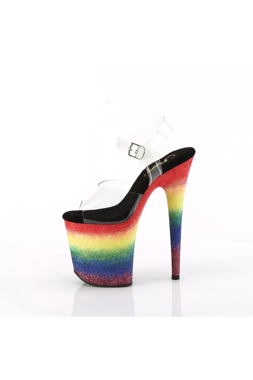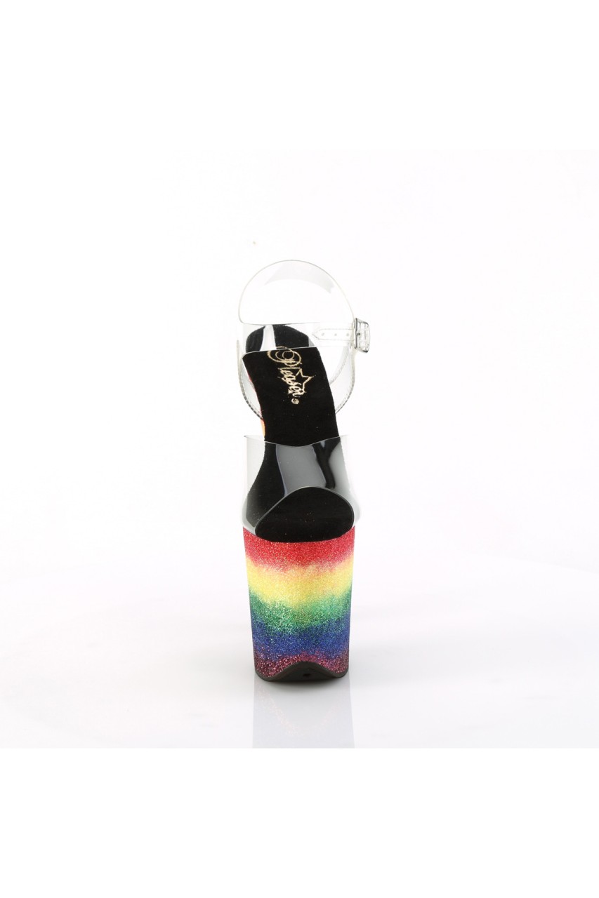 8″” (200mm) Heel, 4″” (100mm) Platform Ankle Strap Sandal Featuring Rainbow Glitter Platform Bottom