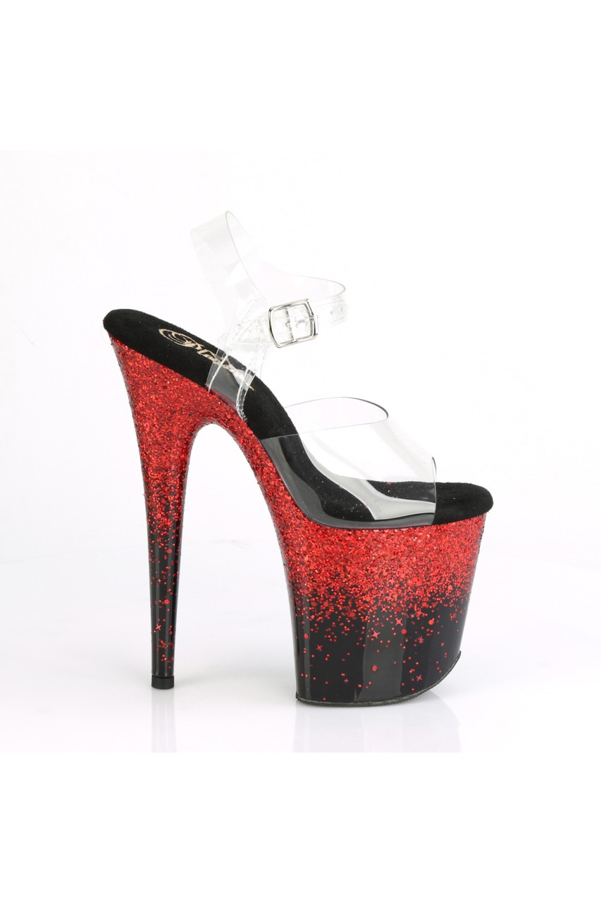 8″” (200mm) Heel, 4″” (100mm) Platform Ankle Strap Sandal w/Holographic Gradient Effect on the Platform Bottom