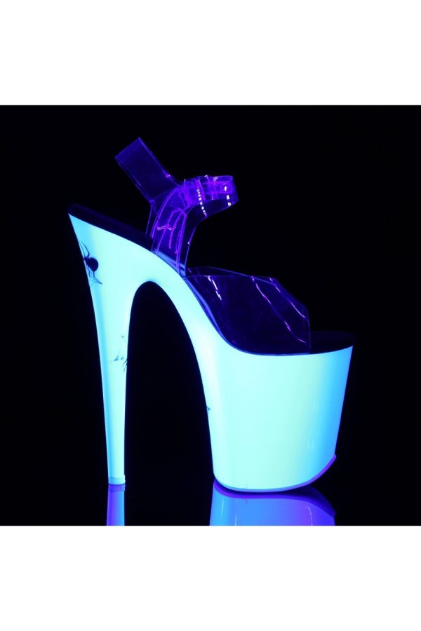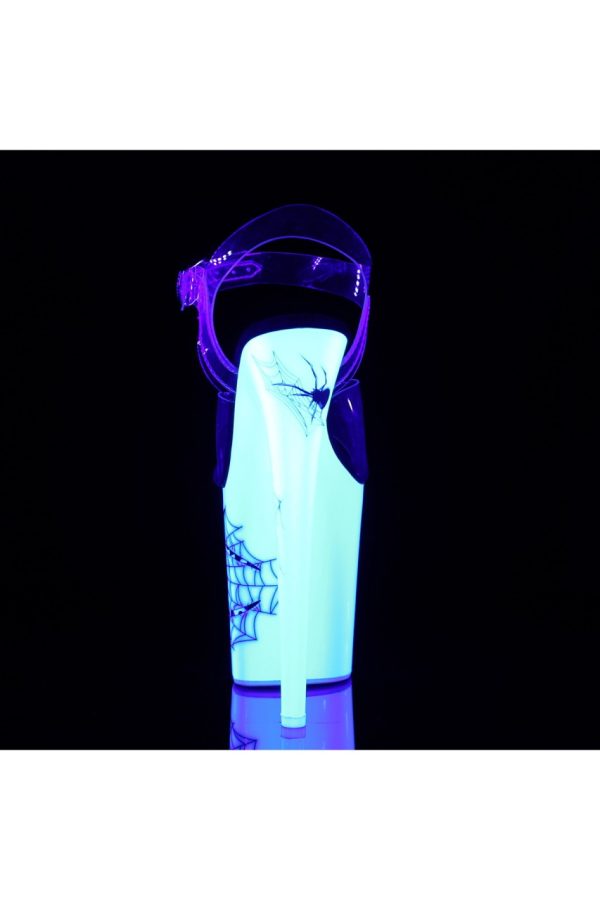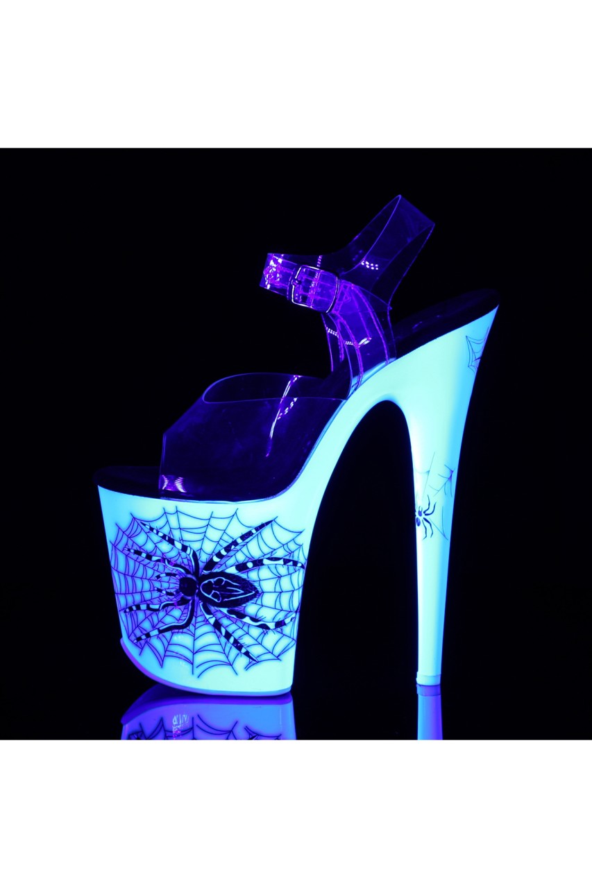 8″” (200mm) Heel, 4″” (100mm) Platform Ankle Strap Sandal Featuring Blacklight Reactive Spider Design on the Platform Bottom
