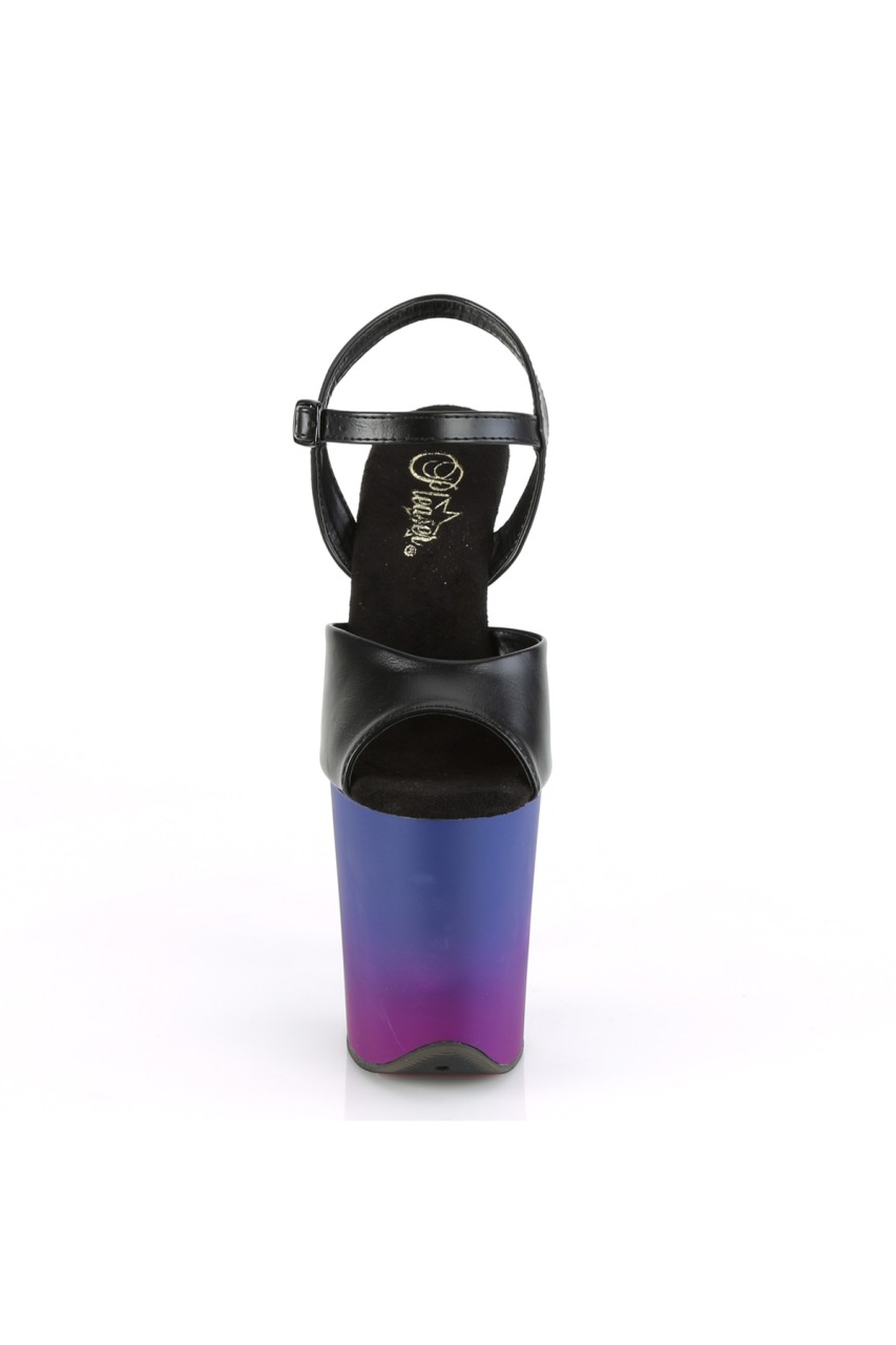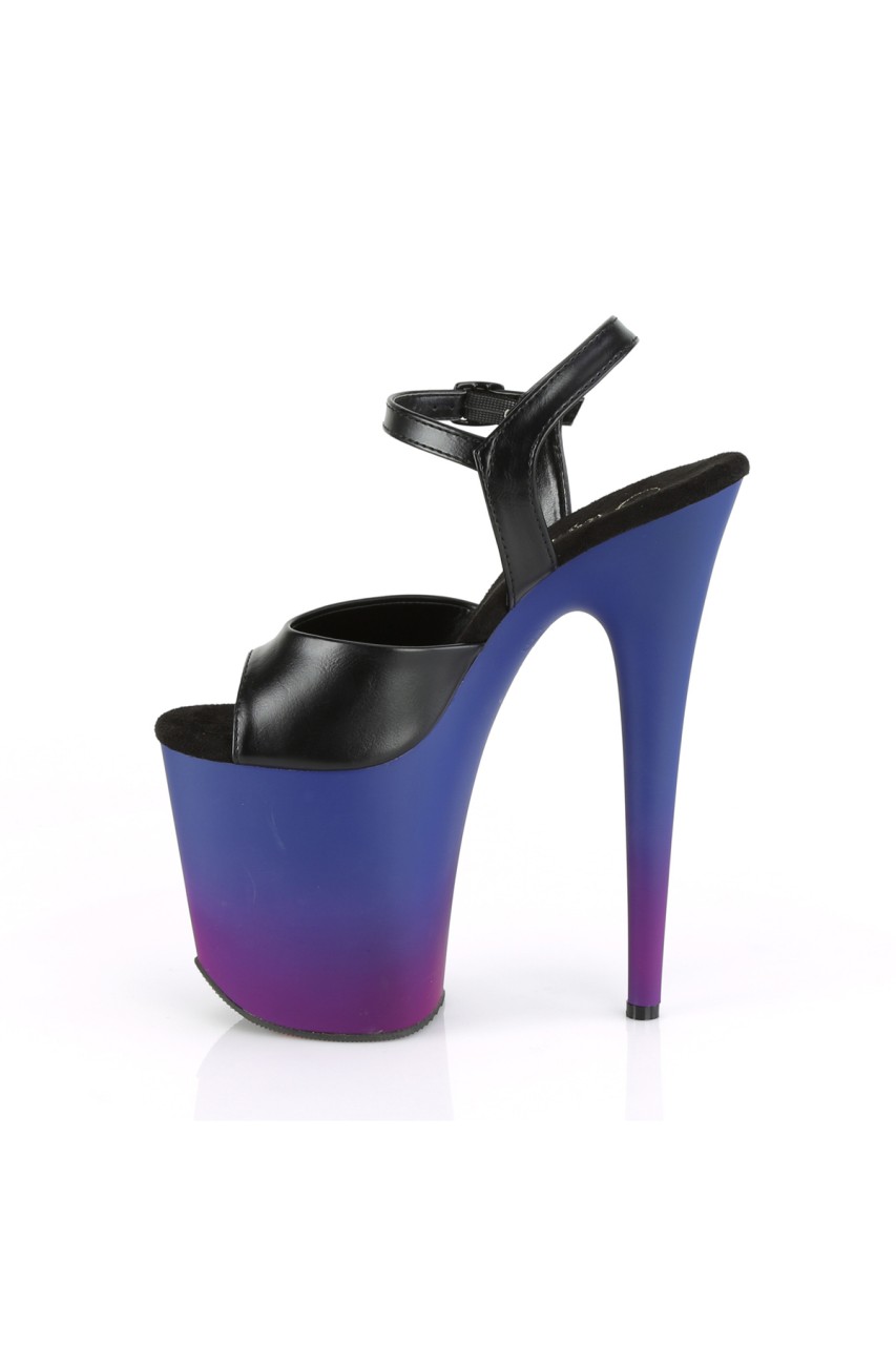 8″” (200mm) Heel, 4″” (100mm) Platform Ankle Strap Sandal Featuring Blue Purple Ombre Effect Platform Bottom