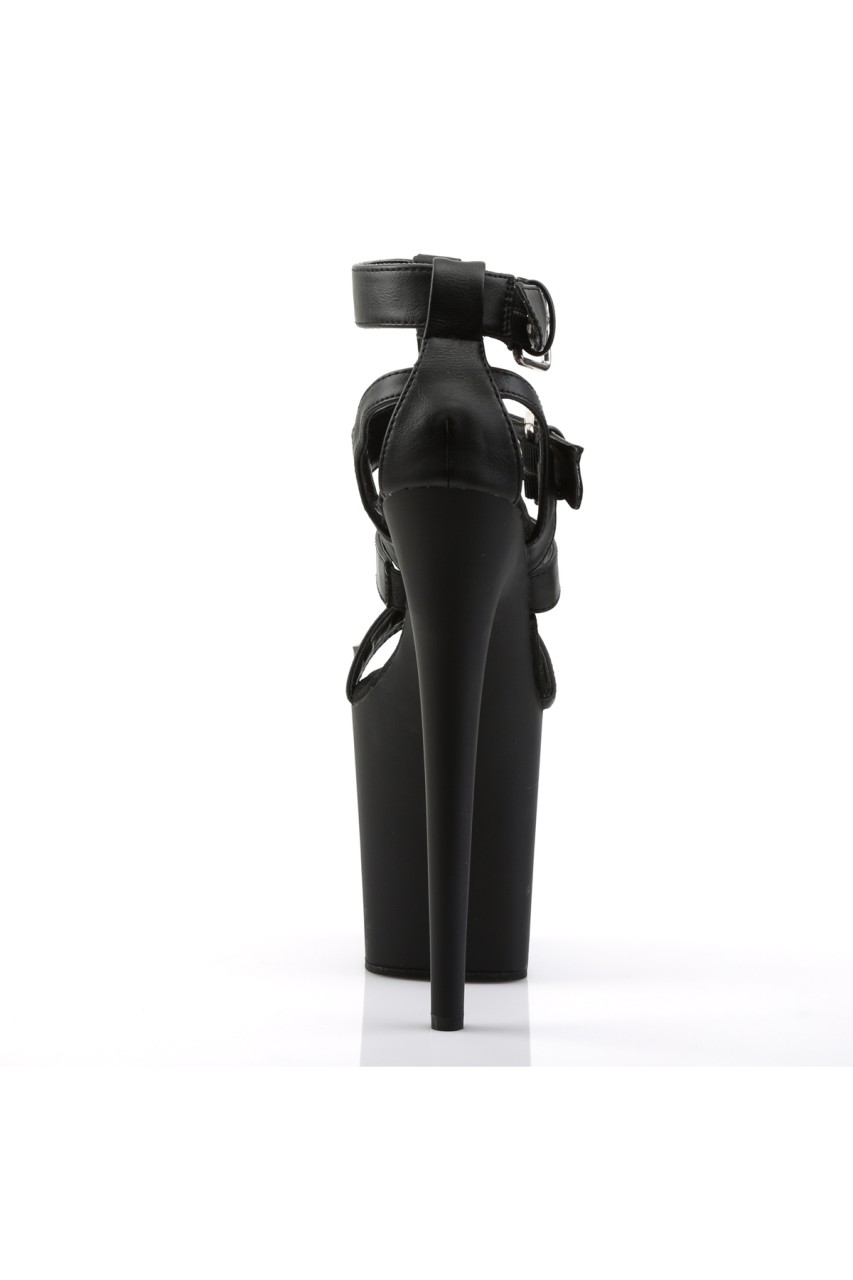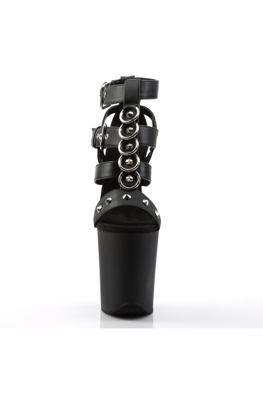 8″” (20.3cm) Stiletto Heel, 4″” (10.2cm) Platform Strappy T-Strap Closed Back Sandal with Metal Rings and Studs Detail