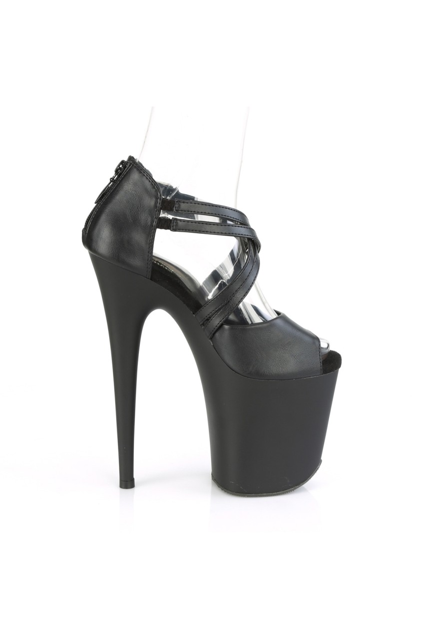 8″” (200mm) Heel, 4″” (100mm) Platform Peep Toe Close Back Ankle Sandal Featuring Dual Criss Cross Buckle Straps