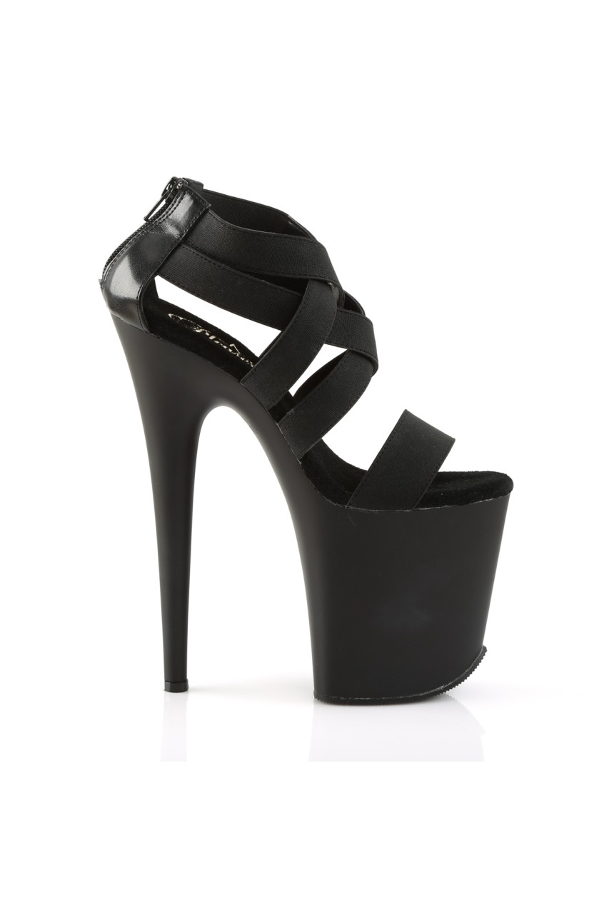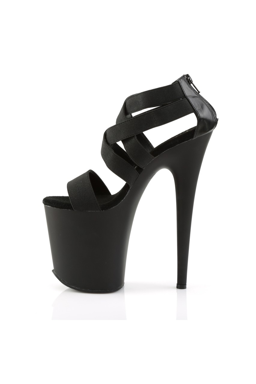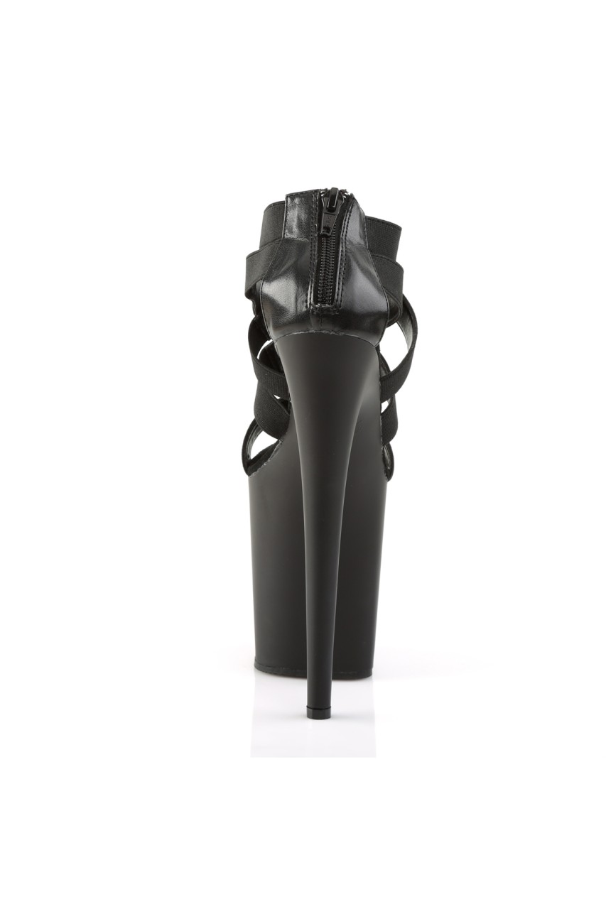 8″” (20.3cm) Stiletto Heel, 4″” (10.2cm) Platform Criss Cross Closed Back Sandal, Back Zip Closure