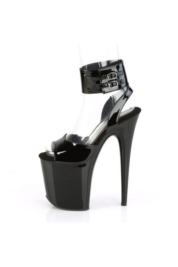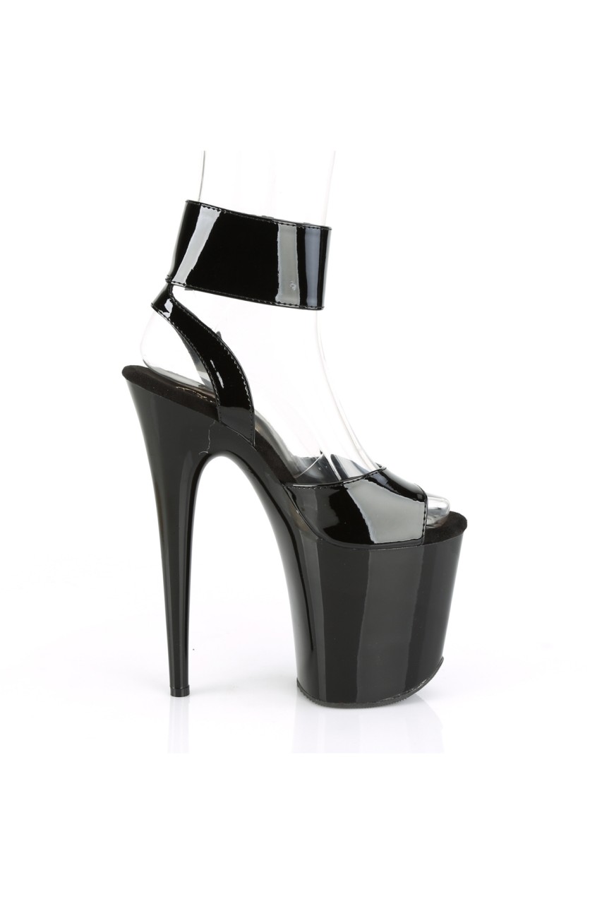 8″” (200mm) Heel, 4″” (100mm) Platform Ankle Strap Sandal Featuring Wide Ankle Band w/ Dual Buckle Straps