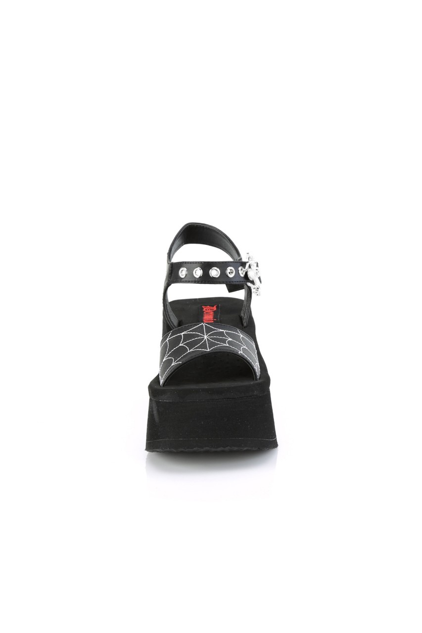 2 1/2″” (64 mm) Platform Ankle Strap Sandal, Featuring Silver-Tone Spider Shaped Buckle at Strap & Spider Web Embridoered Vamp